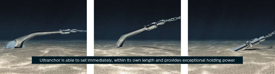 Die Ultra Marine Anker verfügen über eine genaue Gewichtsverteilung, die nicht nur für die Ausrichtung des Ankers wichtig ist, sondern auch für das Aufholen des Ankers an Bord. Sie können jeden Ultra Marine Anker umdrehen und er dreht sich sofort wieder in die richtige Angriffs-Position. Eine solche Leistung wurde, Dank innovativen und patentierten Funktionen erreicht. Jeder Anker ist aufgrund der flachen Schwenkfläche an der Unterseite leicht hochziehbar. Ultra Marine Anker sind für alle Schiffstypen geeignet und sind die am schnellsten haltenden und sichersten Anker auf dem Markt.